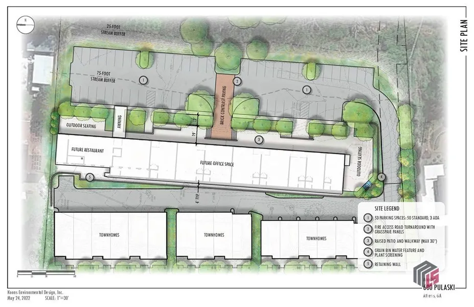 Townhome & Mixed Use development opportunity on 2.65 acres walkable to Downtown Athens, GA. Architectural plans and civil engineering complete for new construction 16 townhome (Six 2 bed townhomes + Ten 3 bed townhomes, 4 floor plans with variations) + adaptive re-use opportunity of an approximate 9,000 SF Cotton Seed Oil warehouse in the hippest coolest neighborhood & most proximate to Downtown Athens, GA. Proposed redesign of the warehouse includes 9 office, &/or restaurant spaces. The site is located in the hippest coolest neighborhood & most proximate to Downtown Athens, GA. The Pulaski Heights Neighborhood is less than a mile from Downtown, Athens, GA. Pulaski Heights was originally home to a diverse mix of homes for clerks, craftsmen and mill employees. Today, it offers modern, architecturally significant homes, renovated mill cottages, while also hosting art, dining, and shopping experiences. Described as the west-end gateway to Downtown, the Pulaski Heights Neighborhood is within walkable proximity to the shopping and dining of Downtown Athens, The Leathers Building, The Bottleworks, The University of Georgia, and Sanford Stadium. Townhome residents will be uniquely poised to enjoy a greater sense of community with pedestrian access to the restaurant, retail and offices of Downtown, and all that UGA has to offer. In addition, 600 Pulaski is steps away from the Pulaski Heights Trail, a paved multi-use walk/bike path that connects Pulaski Heights to Downtown. The sale includes architectural plans by Bork Design (Lori Bork, AIA, Leed - AP) & site work by Josh Koons, with Koons Environmental. LDP has been submitted to Athens-Clarke Co. Legal, including Condo Assoc Documents & Bylaws, Purchase & Sale Agreement and Reservation Agreements are almost complete. This is a "shovel ready" opportunity. The townhouse design offers modern loft-style space with rooftop decks and some of the most amazing views in Downtown Athens. Soaring ceilings and windows with abundant natural light. Design amenities include; 3 levels of living space with rooftop indoor & outdoor living, expansive views, elevators in some plans, & 2 car garages. The development will be the most proximate Downtown residential homes Athens has to offer. The existing Cotton Seed Oil Warehouse on site will be developed as commercial office. Townhome residents and commercial owners and tenants will be uniquely poised to enjoy a greater sense of community with pedestrian access to the restaurant, retail, and offices of Downtown and all that UGA has to offer. This is a "shovel ready" opportunity. xx