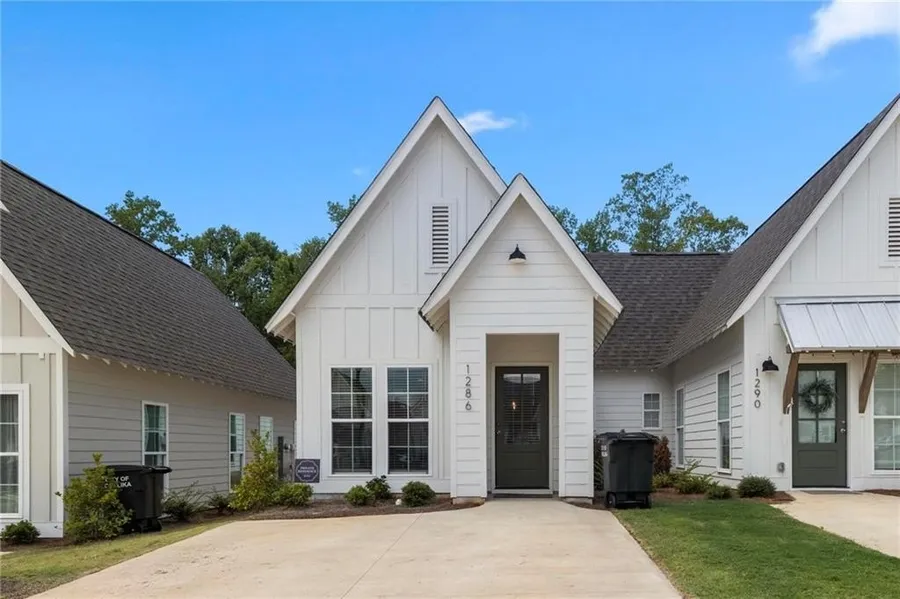 Well priced duette in the front of the community! The Duette 1 is a 2 bedroom, 2 bathroom duplex style home. The covered porch welcomes you inside the spacious vaulted ceing in the living area with 9’ ceilings throughout the rest of the home. The sizable living area extends into an open concept kitchen and dining room. The kitchen is perfect for those who love to entertain and features a long island, plenty of counter space and stainless steel appliances from Whirlpool. Off the kitchen is the first bedroom with a detached bathroom across the hall. To the left of the bathroom is the laundry room. Straight down the hall is the second bedroom featuring a walk in closet and adjoined bathroom. $1,000 credit offered from Seller, and first time homebuyers may be eligible for $7,500 forgivable loan from Drew Goodner with Renasant Bank.