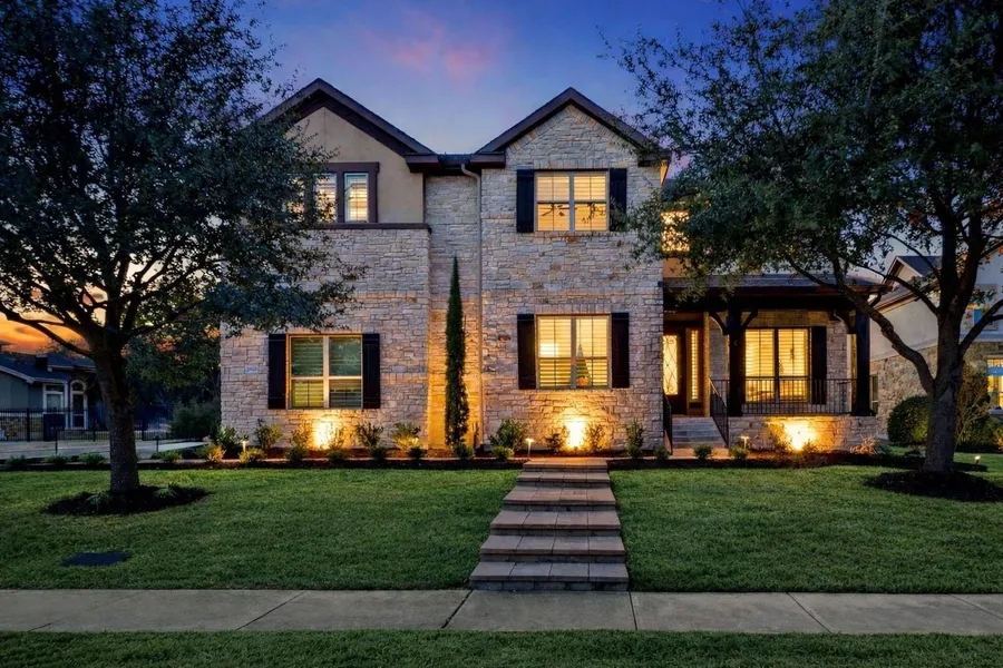 Nestled on a quiet cul-de-sac in the exclusive gated community of the Woods of Greenshores, this exceptional 5-bedroom, 4-bath residence offers a rare combination of privacy and natural beauty-backing directly to the Travis County Canyonland Preserve. Designed with both functionality and flexibility in mind, the highly desirable floor plan features two bedrooms on the main level, along with a dedicated office (easily utilized as a sixth bedroom), spacious playroom, and media room. At the heart of the home is a true chef's kitchen, beautifully appointed with a full KitchenAid appliance suite, including a 48" six-burner professional-grade stove, double ovens, built-in refrigerator, microwave, granite countertops, generous walk-in pantry, and butler's pantry. Recently refreshed kitchen and bathroom cabinetry paint, updated hardware, and fresh interior paint throughout. The luxurious primary...