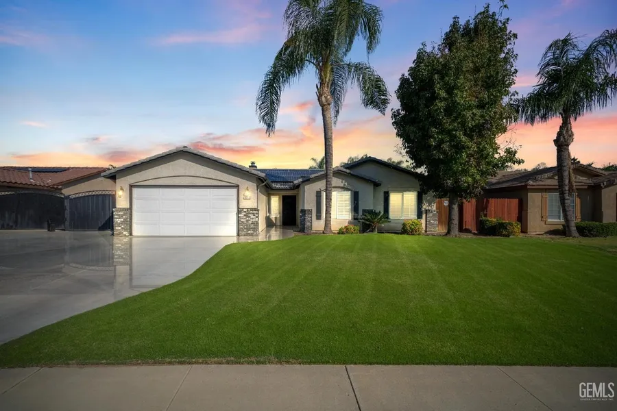 Tucked away on a quiet cul-de-sac in the desirable San Lauren community, this stunning 3-bedroom + office, 2-bath home has it all! Step inside to find a bright, open floor plan featuring plantation shutters, a spacious kitchen with island, and plenty of room to entertain. The primary suite offers a private sunroom perfect for morning coffee or unwinding after a long day. Outside is an entertainer's dream! Enjoy a sparkling pool with dual waterfalls (less than 4 years old!), a charming gazebo with water hookup for a future spa, and RV parking for all your toys. Paid solar, a block wall surrounding most of the property, and pride of ownership throughout make this home a true standout. Located within walking distance to San Lauren Elementary and just minutes from Highway 99 for an easy commute this home truly has the best of comfort, convenience, and lifestyle!