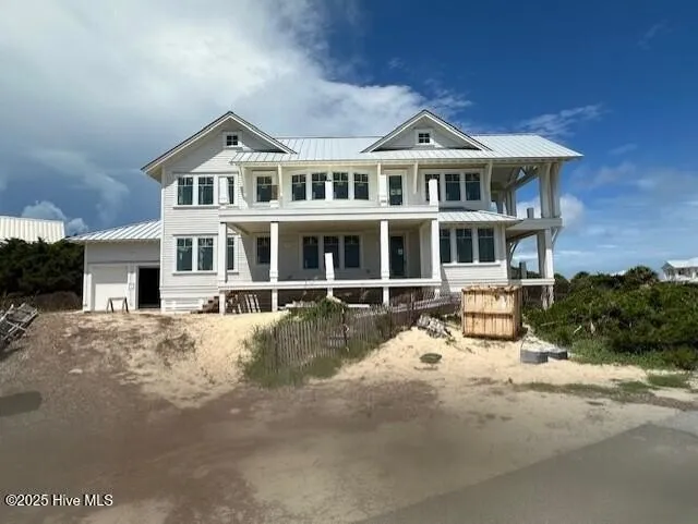 RARE OPPORTUNITY! 1/3rd share of this Frying Pan Shoals' High Dunes Executive Retreat showcasing ocean panoramas off BOTH East & South Beaches! Imagine rocking on the covered front porch of this under-construction 6BR, 5.5BA sanctuary, listening to & watching waves on South Beach. Or stepping into the sunny first-level gathering space & spying East Beach surfers from inside or out on this floor's 2nd covered porch. Inside, hardwoods lead to 5 BRs. The 1st bright suite, cornered by light-sharing windows, provides Atlantic seascapes, porch access, & a private full BA. Down the hall, 2 more sunlit, window-cornered BRs share a Jack & Jill BA (one also enjoys water vistas). Two additional suites, overlooking South Beach, are likewise equipped w/ ensuites. The laundry room is at the end of the hall. This home's vaulted open-floor plan's top level is flooded w/ natural light from surrounding wi...
