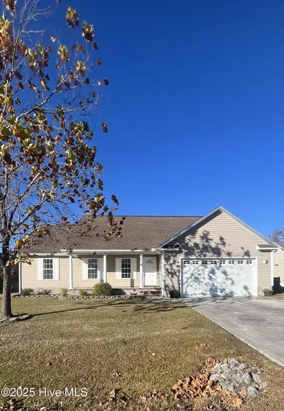 Located approximately 6 miles from the historic Beaufort waterfront, Eastman Creek is a charming neighborhood that features this open-concept ranch home. Upon entering, you'll be welcomed by vaulted ceilings and spacious living areas highlighted by wood floors. The kitchen boasts a bar area and stainless steel appliances, with French doors that open to a 32x12 deck overlooking the fenced yard. The home has a split bedroom floor plan, and you'll appreciate the generous primary suite, which includes an adjoining bath with a whirlpool tub, a separate shower, and double sinks. Additional features include a Nest thermostat, and the deck addition designed to support a hot tub. The dishwasher and smooth-top range are both approximately 4 years old. The Eastman Creek neighborhood features amenities such as a community pool, clubhouse, kayak launch, docks, trails, and play areas.
