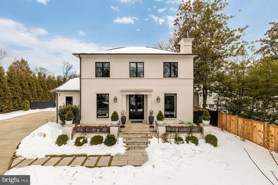 Every long once in a while privilege and opportunity intersect in one's life. That is realized now, in a magnificent European inspired home in the highly coveted Edgemoor community. Approaching the home one senses a modern structure yet something old world about it. Is it the hand-troweled stucco? The stone walkway to an expansive front deck? The architectural shingled roof? The main level floor to ceiling custom windows? The custom 9ft-tall double front door? (All the window and doors inside and out share the same matching oiled bronze-like finish - details, details.) This gives only a hint of what awaits you inside. You first notice volume, dramatically achieved by 10 1/2 -foot ceilings on the entire main level. An oversized central hall invites you to explore all the wonderful spaces the home offers. There is a proper living room with a wood burning fireplace, perfect for sophisticated entertainment or close the oversized pocket doors to create your own quiet retreat. The embassy-sized dining room will accommodate the largest family gathering. Off the dining room is a smart butler's pantry w/wet bar, Zepher wine fridge and an adjacent oversized food pantry. This brings you to the true chef's kitchen: Wolf 36" 6 burner range, additional Bosch oven and combo oven/microwave, expansive marble island, 2 sinks and 2 Bosch dishwashers. Adjoining the kitchen is a bright breakfast room with 3 sides of windows, easily seats 8. All is completed with the contiguous open family room with a wood burning fireplace family room. But wait, there's more: a gorgeous true 3-season porch with flagstone extending out to the rear yard, an amazing 19-foot-wide retractable screen, and a stunning glass wall (two commercial grade glass panels.) The upper offers 4 bedrooms each with bath ensuite. The primary bedroom deserves special mention: More like a 6 star hotel with a foyer-like entry space affording nice separation of the bedroom, 2 walk-in closets and sumptuous bathroom, which features two large double vanities soaking tub and party-size shower. A large fully equipped laundry room finds itself on this floor. The lower level gives a large entertaining area, a home office/hobby room, a 5th bedroom, 5th bathroom, a gym and large extra storage with an additional fridge/freezer. A few other good things - 1st floor powder room and a mudroom to a 2-car garage with a level 2 charger, a grilling area with a gas hook-up, and underground sprinkler systems front and rear. The home is elevator ready on all levels. Aside from its obvious proximity to downtown Bethesda with a diverse restaurant scene of at least 200 restaurants, metro, two convenient access points to the Crescent Trail, Edgemoor residents can enjoy the historic and celebrated Edgemoor Club featuring a 25-meter heated competition pool and 8 renowned Har-tru tennis courts. You really can have it all.