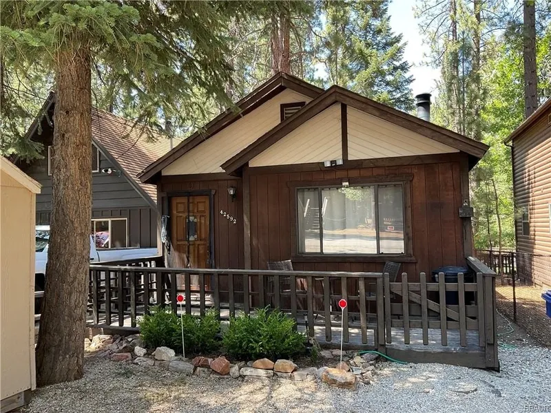 Step into the warmth and comfort of this inviting cabin-style home-ideal for relaxing getaways, hosting family, or enjoying peaceful year-round living. The wood-paneled living room features a blend of cozy seating, soft lighting, and large windows that fill the space with natural light. Thoughtful rustic decor and comfortable furnishings create a welcoming lodge-like feel. The home offers a smart layout with three bedrooms and two bathrooms. The master bedroom is a quiet retreat with its own en-suite bathroom and direct access to the backyard. Step outside to a private patio with outdoor seating and a BBQ-perfect for morning coffee, evening grilling, or soaking up the fresh mountain air. A charming guest bedroom includes two twin beds with matching modern bedding, a shared nightstand, and vintage wall art-ideal for kids or guests. A second full bathroom provides added convenience and comfort for visitors or family members. Inside and out, this home blends cozy cabin charm with everyday functionality. The fenced backyard, thoughtful furnishings, and balance of shared and private spaces make it well-suited as a personal residence, vacation home, or future rental opportunity.