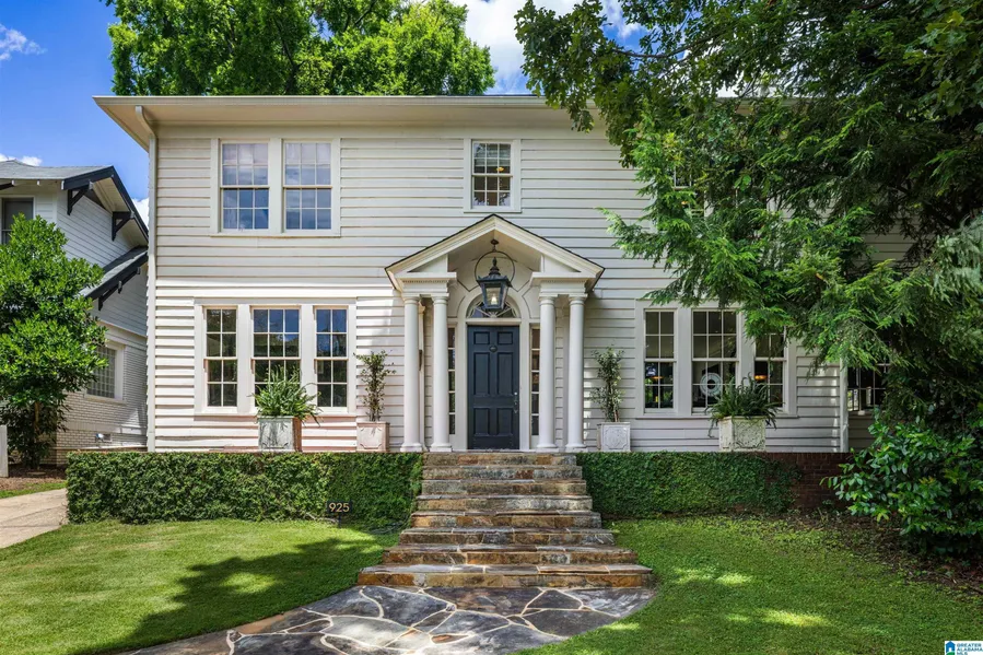 Nestled on one of Forest Park’s most sought-after streets, this elegant Georgian-style home blends timeless character with modern comfort. The main house offers 3 bedrooms and 3.5 baths, while a charming studio above the 2-car garage provides ideal space for guest quarters or a home office. Inside, a gracious foyer opens to a large dining room and spacious living room with fireplace and accordion doors to a stone patio. A cozy den adjoins the living room, and the kitchen features solid-surface counters, stainless appliances, and a wall of windows overlooking the landscaped backyard. The main level also includes a powder room and laundry with slate floors. Upstairs, the spacious primary suite boasts a dressing room, screened porch, and spa-like bathroom with heated floors, jetted soaking tub, double vanity, and a large picture window. Filled with natural light and enhanced by professionally designed stonework and gardens, this home also offers alley access at the rear.