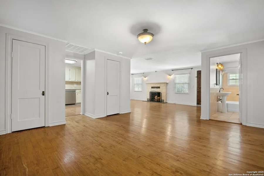 Situated on a corner lot near downtown Boerne, this home combines comfort and convenience on a .233-acre property. Inside, you'll find three bedrooms, two bathrooms, hardwood floors, a living area with fireplace, and a kitchen with granite countertops and stainless steel appliances. Outdoor features include a covered patio, extended prep area with sink, mature shade trees, and a storage shed. Just minutes from local shops and restaurants. Boerne ISD