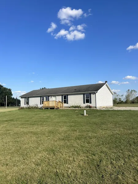 Sharp 3 bed/2 bath ranch ! ( Manufactured home) on partial crawl space. Well in front, septic in rear yard. Lot is 2.2 acres ! Lot line on South side go's beyond ditch ... see red flag markers. Recently many updates on interior . Master bath has both shower and tub. Beautiful kitchen cabinets. Range and refrig. stay. Fireplace is not warranted. Newer floor goods. Six panel doors. Wood deck in rear. Great country atmosphere with corner lot !