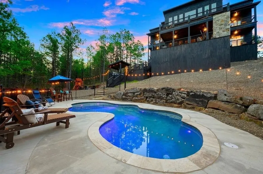 Mountain Glam Meets Five-Star Fun in Hochatown/Broken Bow Oklahoma Welcome to your next showstopping investment and dream getaway. This 5-bedroom, 5-bath luxury STR cabin is perched in Carter Mountain West , a highly sought after area and delivers elevated style, bold design, and unforgettable experiences at every turn. Inside, you'll find four oversized king suites, each opening to its own private balcony perfect for morning coffee with a view. A bunk room with queen over queen beds adds flexible sleeping space, while the game room brings the entertainment with a pool table, shuffleboard, and room to gather. The full bar sets the stage for evening cocktails and late-night laughs. It has a full wine refrigerator, beverage refrigerator and icemaker so upper level guests can enjoy their own space. The upper level has fantastic mountain views at every angle . All decks have upscale outdoor ...