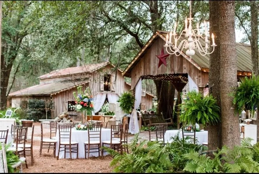 chapel, a large reception barn, and various outbuildings to includes two separate dwelling, large storage barn (can fit 8 cars). Outdoor amenities include patios, gazebos, a fire pit, and reclaimed brick walkways. The property is ideal for large gatherings, with room for a pool, hiking trails, and nearby hunting and boating. Conveniently located near