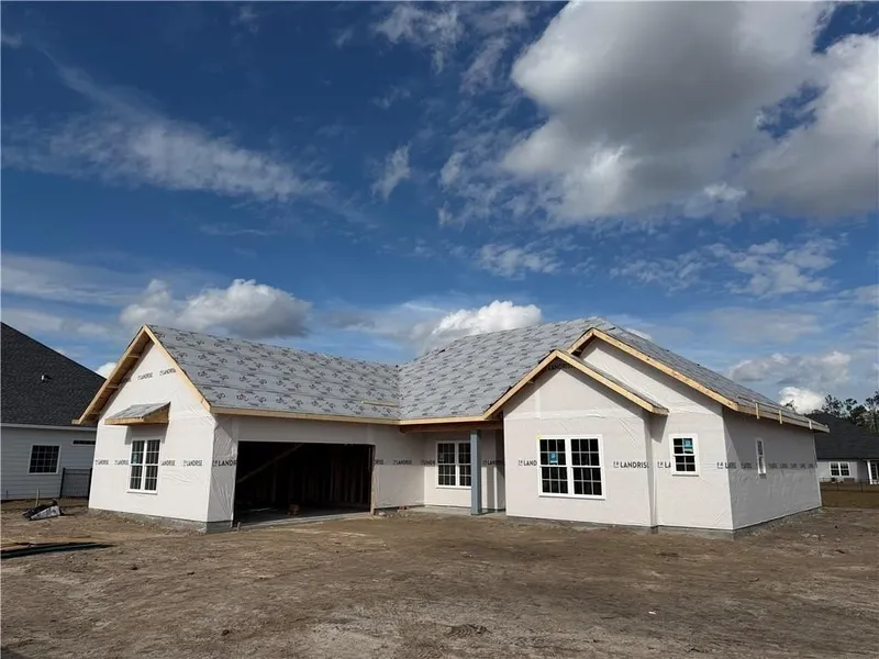 The Elijay Plan is 3 bedrooms/2 baths. This open floor plan has quartz countertops in the kitchen, granite countertops in bathrooms, LVP flooring in main living areas and laundry, carpet in the bedrooms, and tile in the baths. All stainless steel appliances (No Refrigerator). This home has an oven/range combo and a microwave hood vent. This is a newer development within Carriage Gate Plantation. It's a gated community with great amenities, including a large pool, lounge area, fire pit, and a grilling area. Estimated Completion: Late March 2026.