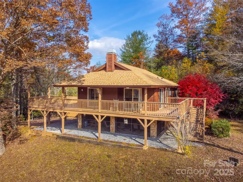 Dreaming of your own private mountain sanctuary? You've found it. Tucked away on 10+ acres of unrestricted Western North Carolina land, this gated retreat delivers the peace, privacy, and usable acreage buyers crave. With room to expand, the property offers endless possibilities... add additional cabins, hiking trails or build a family compound. Inside, this rustic mountain getaway features 2 bedrooms, 2 bonus rooms, 2 baths, 2 separate living areas, a kitchen and kitchenette and a gorgeous stone fireplace. A sprawling deck allows for taking in the majestic mountain views, giving you the perfect place to gather with friends, sip coffee in the crisp morning air, or simply listen to the soothing sounds of nearby Alarka Creek. There's also a screened-in porch on the main level and a large outdoor firepit, adding even more outdoor living space. Whether you're looking for a private family ret...