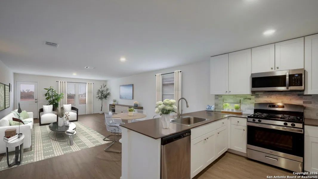Welcome home to this extremely affordable and energy-efficient gem located in the desirable Hidden Trails community, conveniently situated off Hwy 281 North in Bulverde, TX in the Johnson Ranch area. Offering over 1,400 square feet, this well-designed home features 3 bedrooms and 2 full baths with a functional layout that maximizes comfort and everyday living. The open-concept living area creates the perfect space to stay connected with family and friends while cooking in the thoughtfully sized kitchen. Recent upgrades include a stylish new backsplash and upgraded faucet, and with a full-price offer, the refrigerator, washer, and dryer convey, making this home truly move-in ready. One of the standout features is the solar panel system, which will be paid off at closing, allowing you to enjoy average electric bills of around $50 per month, even during hot Texas summers. An electric vehicl...