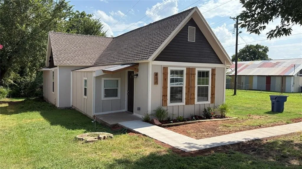 A beautifully renovated down to the studs (electrical/plumbing/HVAC/drywall & insulation/roof) 3-bedroom, 2-bathroom home that perfectly blends modern style with small-town charm. Step inside and you'll love the open-concept layout featuring luxury vinyl plank flooring, a spacious living area, and a sleek electric fireplace for cozy evenings. The stunning kitchen boasts granite countertops, stainless steel appliances, a large island for casual dining, and soft sage cabinetry that adds a pop of character. Both bathrooms are fully updated, featuring all new plumbing and modern fixtures and stylish tile work. Plumbing completely replaced to the main. The exterior is just as inviting with its fresh siding, rustic wood shutters, and a newly poured sidewalk leading to the covered front entry. Enjoy a large yard with plenty of room to garden, play, or entertain. Conveniently located near downtown Guthrie, you'll be minutes from shopping, dining, and entertainment. This move-in-ready home is ideal for first-time buyers, downsizers, or anyone looking for a low-maintenance property with modern upgrades.