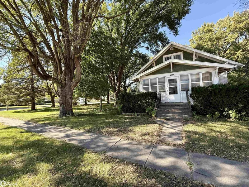 Craftsman style bungalow featuring tall ceilings and open living and dining area with original woodwork and colonnades. Situated on a double corner lot with mature trees, alley access, a detached single car garage and storage shed. Conveniently located just blocks from downtown shopping. With your updates, this home offers great character and potential.