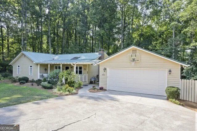 Charming Cottage-Style Home with Guest House on Nearly 2 Acres - No HOA! Rare opportunity! This beautifully maintained property offers two homes on almost 2 private acres with no HOA just minutes from Lake Lanier, GA-400, and downtown Cumming. The main home is full of cottage-style charm and in excellent condition, featuring a main-level master suite with vaulted ceilings, double vessel sinks, and an oversized dual rain shower. The open living space includes a cozy family room with skylight, hardwood floors throughout, and a kitchen with granite counters, travertine tile, and a charming cottage-inspired island. The sunlit dining room overlooks a wooded, private backyard. A finished basement offers a bedroom, living space, and extra storage. The second home is fully renovated, ideal for guests, in-laws, or rental income. It includes 2 bedrooms, 1.5 baths, granite countertops, beautiful ca...
