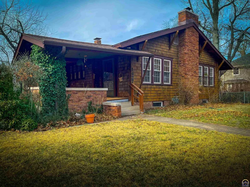 Welcome to this charming bungalow in the award-winning College Hill neighborhood, where timeless character meets modern efficiency. A spacious front porch invites relaxed mornings and lively evenings with friends and neighbors. Inside, the main level features a bright, open-concept living and dining area with beautifully refinished oak floors, a beamed ceiling, and a classic fireplace, creating a warm and inviting heart of the home. Four bedrooms offer flexible options, including two conforming and two non-conforming, complemented by two full baths. The home's low-maintenance cedar siding adds lasting curb appeal, while forced-air heating and solar panels provide energy-efficient comfort-last month's Evergy bill was just $15. Outside, enjoy a fully fenced yard with an above-ground pool, lush flower gardens, and a tranquil bird sanctuary feel. A large auxiliary building offers versatile s...
