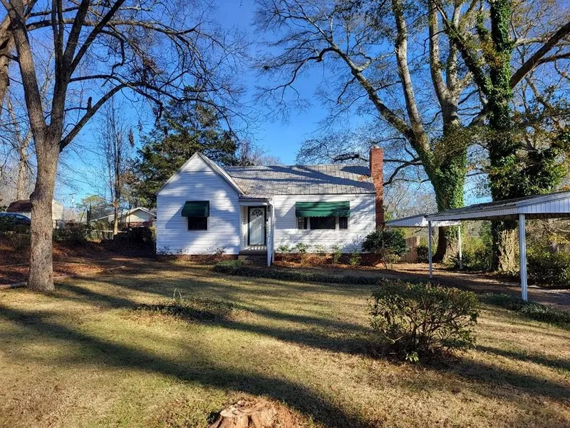 Adorable home ready to move-in. Level front yard with shade trees. Original hardwood flooring. Bonus room. 2 bedroom. 1 full bath. Metal roof. HVAC installed in 2025. Rear covered deck with ceiling fans. Shed with drywall and electricity. Rear chain link fence. Detached metal carport. Covered front stoop. Must see.