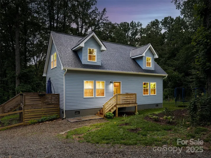 Welcome to this move-in ready mountain retreat just 5 miles from downtown Asheville. Set on over 2.5 acres, this thoughtfully designed 4-bedroom home blends modern comfort with peaceful, private surroundings. The open-concept layout is filled with natural light and features hardwood floors, wallpaper accents, and contemporary lighting throughout. The spacious kitchen flows into the living and dining areas, ideal for entertaining. The flexible floor plan includes 2 bedrooms on the main level and 2 bedrooms upstairs, each with an en-suite bathroom, offering options for guests, home office, or multi-generational living. The spacious primary bedroom includes an en-suite with a freestanding soaking tub, tiled walk-in shower, and double vanity. Outdoors, enjoy landscaped grounds, a fenced side yard, chicken coop, and storage shed. With no HOA, there's room to garden, raise chickens, or simply enjoy the space-all minutes from Asheville's shops and restaurants.