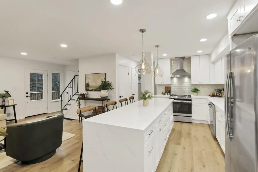 Stunning Clintonville home tucked away on a quiet street, featuring a huge front yard and a welcoming presence that sets the tone from the moment you arrive. The main floor offers a thoughtful and updated layout with durable LVP flooring, two main-floor bedrooms-one ideal for a den or home office-and a convenient half bath. The beautifully updated kitchen anchors the living space with designer finishes, a gas range, and stainless steel appliances, creating an inviting space for everyday living and entertaining. The finished basement adds valuable additional living space with a versatile rec room and office space. Upstairs, hardwood floors create a warm and inviting atmosphere, highlighted by the private primary suite with vaulted ceilings and an ensuite bath. Two full bathrooms on this level provide comfort and convenience, and all bathrooms throughout the home were updated in 2023. Exte...