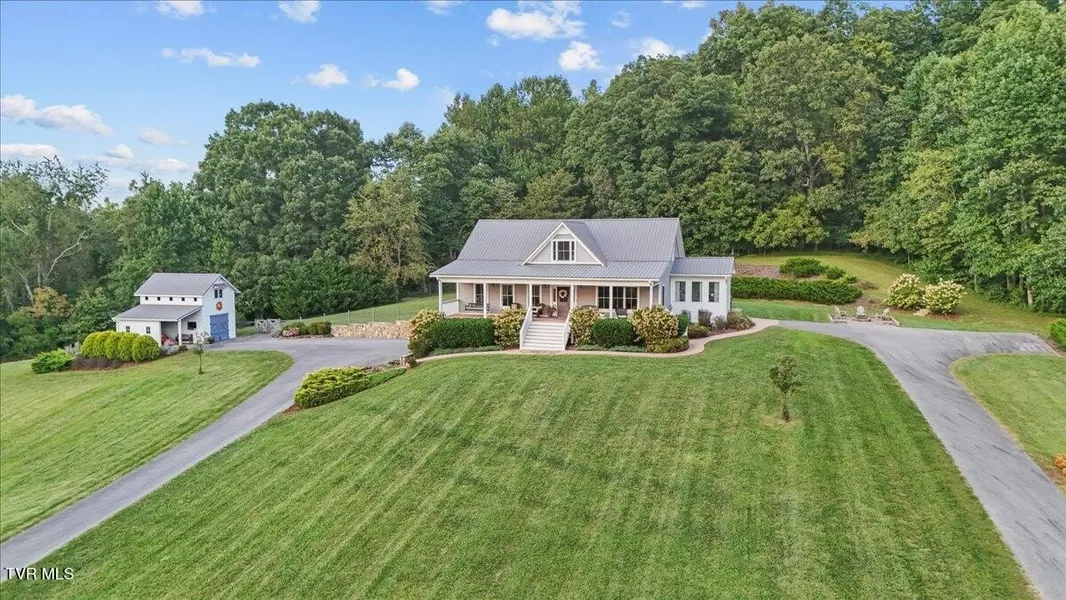FIRST TIME ON THE MARKET- Stunning custom-built home on 8 acres with AMAZING VIEWS OF BOONE LAKE AND THE MOUNTAINS. This gorgeous home has over 2,500 finished square feet, 3 bedrooms, 2.5 baths, 2-car garage and 2-story barn with covered shed area for equipment. The main level of this move-in ready home features an inviting entry foyer, great room with stone gas-log fireplace, sunroom/dining room with vaulted ceiling, eat-in kitchen with custom maple cabinetry, granite counter tops, ample counter and cabinet space, farmhouse sink, stainless steel appliances and custom wood island with seating; powder room, laundry room with utility sink, mudroom/pet room with doggie door which your pooch would love! The spacious main level primary bedroom has a large walk-in closet and en-suite bathroom with double vanity, soaking tub and tiled shower. The second level features two generously sized bedrooms, a full bath and computer nook/sitting area. The basement features an oversized 2-car garage with utility sink and approximately 740 square feet of semi-finished area with roughed-in plumbing for a bathroom, electrical wiring and framing; turnkey to be finished if needed. Enjoy fabulous outdoor living spaces: Fantastic views of the lake from the covered front porch with swing, covered back deck, paver patio and second patio with firepit, level fenced backyard, beautiful landscaping, 8 acres with the perfect mix of open space and woods to offer privacy, located in a quiet cul-de-sac. Other highlights are: Open concept, neutral colors, hardwood flooring, ceramic tile, surround sound in living room, and outside speakers on front porch, large windows in every room for natural light and capturing the views, NO CITY TAXES, NO HOA DUES and chance to own your on mini-farm in beautiful East Tennessee. Conveniently located to Kingsport, Bristol and Johnson City, across Boone Lake and close to marinas and public boat access ramps.