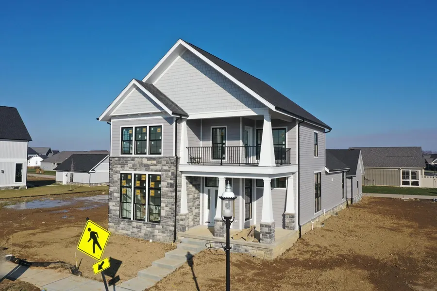 This elegant two-story home blends modern comfort with timeless design, offering bright, open living throughout. Soaring 10-foot ceilings and oversized windows flood the home with natural light, creating an airy, welcoming feel from the moment you enter. Enjoy a first-floor primary suite, featuring a spacious walk-in closet with solid shelving. A dedicated flex space on the main level makes an ideal home office or reading room, perfect for easy living. Upstairs, step out to your covered patio overlooking protected green space, soon to be transformed into a wildflower garden, keeping your views unobstructed. Thoughtful finishes are found throughout, including soft-close cabinetry, quartz countertops, and a well-designed laundry/mudroom with custom built-ins that keeps daily life organized and efficient. The full basement includes an egress window and rough-in plumbing, offering excellent ...