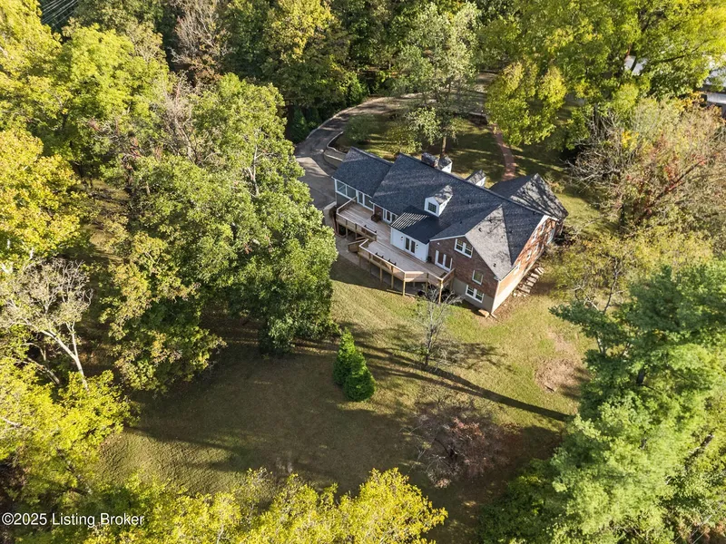 Escape the ordinary and come home to something truly special in the heart of St. Matthews. Tucked away on a little-known cul-de-sac, this beautifully remodeled Cape Cod sits on 1.69 acres of serene privacy bordered by the tranquil waters of Muddy Fork stream. It's rare to find this kind of natural beauty inside the Watterson Expressway. Step inside and feel the warmth of sunlight pouring through vaulted ceilings and expansive windows. From the foyer, enter the large gourmet kitchen that flows effortlessly into the dining and four seasons room - perfect for year-round entertaining or peaceful solitude. The first-floor primary suite is a private retreat, opening to a spacious deck and featuring a spa-worthy bathroom with a freestanding soaking tub, walk-in shower, and double vanities. The main level also offers an expansive living room with a cozy fireplace, a powder room, a guest suite with a full bathroom, and a dedicated office. Upstairs you'll find two large bedrooms, a full bathroom, ample closet space, and a generous loft providing space for family, guests, or quiet reflection. The walkout lower level expands your living area with another fireplace, wet bar, full bathroom, an additional bedroom, a dedicated laundry room, and a workshop or storage space ready for your vision. Outside, take advantage of the massive deck to enjoy morning coffee, evening cocktails, or quiet moments surrounded by nature. Every inch of this home has been thoughtfully and tastefully reimagined, blending timeless charm with modern luxury. Conveniently located near St. Matthew's local boutiques, restaurants and markets, Holy Trinity Parish School, and the city's top-tier hospitals and medical providers. This home offers the best of both worlds - a private retreat in one of Louisville's most desirable locations!