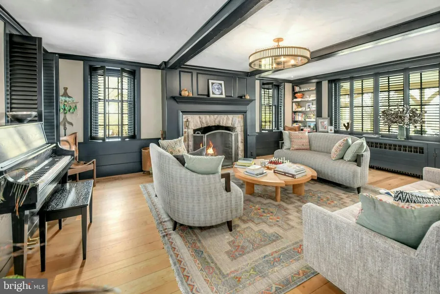 Holmquist Farm epitomizes a harmonious coexistence between nature and the comforts of home located in Solebury Twp on 12 PRIVATE FENCED ACRES. Every aspect of the property has been renewed or improved in the last three years, including stunning new floors and unique light fixtures throughout the main house, an oversized 3 car detached garage with luxe 2-bedroom GUEST HOUSE, extensive landscaping, INFITITY POOL, and even a pickleball court. Entry begins with a classic formal living room with deep silled windows, walls of built-ins, and a wood-burning fireplace. The large family room boasts a 2-story vaulted ceiling with reclaimed wood beams and massive chandeliers, along with a floor-to-ceiling stone fireplace flanked by tall windows. The 2022 GOURMET KITCHEN is a chef's dream, with marble backsplash, soft close cabinets, burnished bronze fixtures, and a large island. The dining room is e...