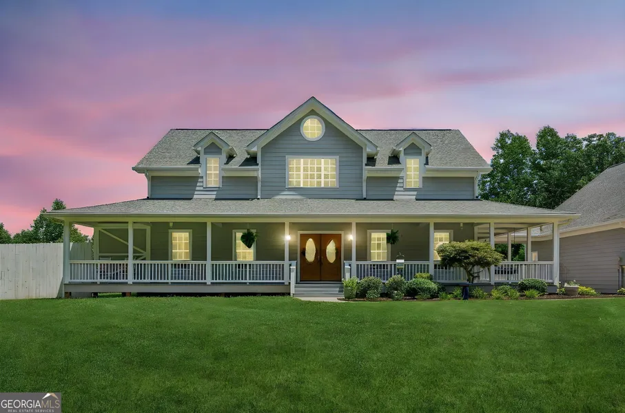 Welcome to your dream retreat-this beautifully crafted custom home is nestled on 12.79 picturesque acres, offering a perfect blend of open, sunlit space and wooded privacy. Enjoy year-round natural light streaming through every window, with ample open yard for outdoor enjoyment and a tranquil creek fed by a natural spring meandering through the wooded property. This is a Nature Lover's Paradise - wildlife abounds here-deer are plentiful and can often be seen from the comfort of your own deer stand, already in place, or right off your back deck. Whether you're seeking serenity or adventure, this property delivers. It's sub-dividable, making it ideal for multigenerational living, and is currently enrolled in a Conservation Use Assessment for tax savings. This meticulously maintained, high-quality home features: A full 4-sided wrap-around porch, Expansive rear BBQ deck-perfect for entertaining, a detached 6-car garage with a massive attic, ready to transform into a man cave, teen hangout, or hobby space. Step inside this home to a grand two-story foyer featuring a beautiful hardwood staircase. The main level offers a luxurious primary suite with vaulted ceilings, a spacious walk-in closet with natural light, and a spa-inspired ensuite bath including: A 6' Kohler soaking tub, Custom tiled shower with built-in bench, Double vanities with a seated makeup area. The inviting living room centers around a cozy fireplace, and the chef's kitchen is both functional and stylish, boasting: Custom cabinetry with soft-close drawers, Granite countertops, Tiled backsplash, Stainless steel farmhouse sink (double bowl), Black stainless steel appliances, Two large pantries, Breakfast area, breakfast bar, and formal dining room. Elegant Interior Features: Luxury wood-style flooring throughout, Solid wood doors, Custom trim and accent moldings, an 8-circuit manual transfer switch with portable generator is included. Bonus Features & Outdoor Amenities: Detached 6-car garage with breezeway for all-weather access, Large, custom-built playground set (included). 30'x20' RV carport with 12' height and 30-amp RV electrical outlet, An adorable 20'x10' insulated "she-shed" with flooring and 30-amp electrical service. (Not included, but available for separate purchase) This home is in a Prime Location ideally situated near Homer, Helen, and Dahlonega, with easy access to I-85, Hwy 365, and I-985. Local attractions include: Dave & Kate's Amish Store, Jaemor Farms, Tallulah Gorge, Toccoa Falls, Helen and its alpine village charm, Tanger Outlets, Lake Russell and Wilson Shoals Wildlife Management Areas, and Chattahoochee-Oconee National Forests is less than an hour away. No HOA. No Restrictions. Endless Possibilities. Whether you're looking to build, relax, entertain, hunt, or simply enjoy a peaceful rural lifestyle, this turn-key property is ready to welcome you home.