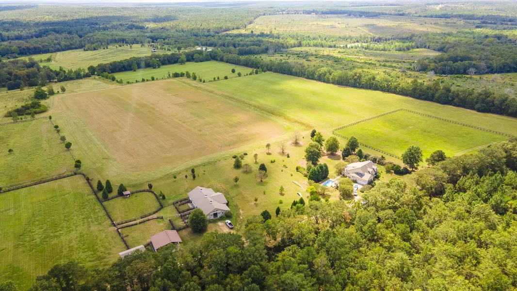 Bitters End Farm - Gorgeous custom home, pool and 8-stall barn are beautifully sited on approximately 48 acres of open fields and fenced paddocks with sweeping pastoral & ridgeline views to enjoy Aiken's equestrian lifestyle. The 4BR/4.5BA residence, built in 2010 by Mitch Johnson, offers quality craftsmanship, high ceilings, hardwood floors, two gas fireplaces and light-filled rooms. The Great Room impresses with vaulted ceilings, a heart pine-mantle fireplace and French doors opening to a gracious covered porch with incredible views overlooking the neighboring polo field. Around to the side of the home, you will be delighted by the privately landscaped saltwater pool with fields & barn beyond. Back inside, a gourmet kitchen features knotty pine cabinetry, leathered granite counters, Whirlpool appliances and a walk-in pantry. For more formal occasions, there is a lovely formal dining room while a separate home office / den offers beautiful built-ins and an inviting place to attend to business or correspondence. The primary suite is found on the main level and includes a sunlit, bay window sitting area, porch access, two walk-in closets, and spa bath with jetted tub and glass-enclosed shower. Three generous guest bedrooms, each with walk-in closets, are located upstairs; one bedroom features a private bath while the other two share a hall bath. A generous 2-room laundry / mud room is found off the back hall between the kitchen and the expansive 2-car garage with extensive built-in storage. Bitters End Farm is all about the equestrian lifestyle and outdoor living. Equestrian amenities include a Tim Zekany-custom built 8-stall barn with a climate-controlled tack room, indoor wash stall with both hot & cold water, a large hay/feed storage room, and a climate-controlled lounge/efficiency apartment with full bath/laundry room. The property offers several newly painted fenced paddocks with run-ins and new fencing. A separate custom-built equipment building offers two garage bays, concrete flooring, loft storage, and covered horse trailer parking to keep everything neat & tidy! During warmer weather, you can enjoy a refreshing afternoon swim in the in-ground saltwater pool (new liner in 2024) after working with your horses in the morning. Sip an iced tea on the back porch while watching polo during the season or a glass of wine while taking in a spectacular sunset. Wherever you are on this gorgeous property, the views are absolutely captivating! The property has been thoughtfully landscaped to maximize the views while providing privacy where needed. The property's structures are outfitted with SMART home security, lightning protection, metal roofs and supported by a 110 GPM well. Estancia Lane is located just minutes from the town of Wagener, SC and is an easy drive to equestrian venues and shopping in Aiken as well as the Columbia, SC airport. Bitters End Farm is truly an exceptional property, combining comfort, function & an idyllic, peaceful ambiance to which to welcome you and your horses home!