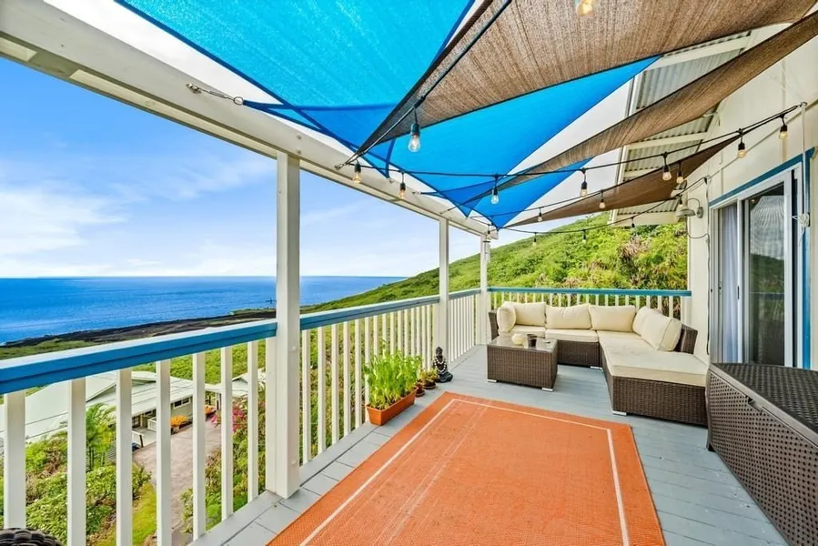 COASTLINE, SURF & SUNSET VIEWS from Stylish remodeled home. Open concept with good natural light and vaulted ceilings. Luxury vinyl flooring, French barn doors, upgraded fixtures & ceiling fans. The Living & dining area opens to the lanai for your al fresco dining and outdoor living. The gorgeous kitchen features new quartz counters and white subway back- splash. Custom cabinets & pantry, stainless steel appliances. Both light & bright bedrooms open onto the lanai. The Bathroom includes white porcelain vessel sink, back splash, wood cabinet, Light fixture & ceiling fan, corner shower. Private outdoor shower with cafe doors. Lanai is shaded by "Sunbrella" shade cloth. Large 528 sf open carport w/laundry & storage. UV filtration system. A short walk or drive to the trail park with a pickle ball court or or the beach park to snorkel, swim, kayak or fish. Approximately 15 minutes to a conven...