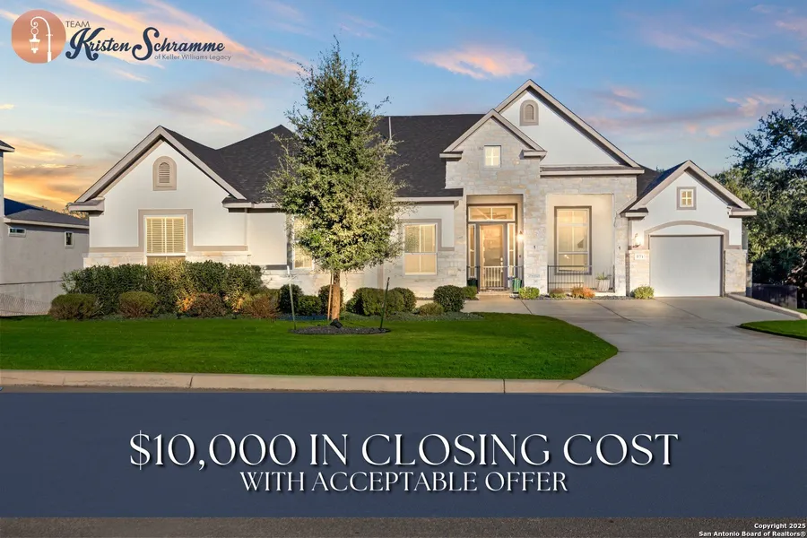 **$10,000 Seller Concession with Acceptable Offer**3.88 VA Assumable Loan Available! This exquisite one-story Chesmar home features one of the builder's most popular floor plans, offering soaring ceilings, elegant finishes, and an open concept layout designed for both everyday comfort and effortless entertaining. At the center of the home, the expansive living area showcases custom built-ins and a striking fireplace that adds warmth and sophistication. The gourmet kitchen is a true showpiece, featuring dual islands, an oversized walk-in pantry, abundant cabinetry and counter space, a reverse osmosis system, stainless steel appliances, a GE Profile five-burner gas cooktop, pot filler, and two breakfast bars ideal for gatherings. The private primary suite offers serene views and patio access, along with a spa-like bathroom featuring a freestanding soaking tub, oversized walk-in shower, dual vanities, linen storage, and a custom closet with built-ins and triple hanging rods. Each secondary bedroom includes a private bath and walk-in closet for maximum comfort and privacy. A dedicated study with 12-foot ceilings and French doors provides the perfect space for work or quiet retreat. Additional highlights include mounted televisions (included), a well-appointed utility room with cabinetry, granite counters, refrigerator space, hanging rod, and a practical drop zone. The three-car split garage is finished with epoxy floors, custom shelving, and a Defender Series water softener. The property sits on a generous .47-acre greenbelt lot surrounded by mature trees and professional landscaping. The fully fenced yard includes a full sprinkler system, ensuring the grounds remain lush and vibrant year-round. Enjoy exceptional outdoor living with a screened-in patio complete with a cozy gas fireplace and stamped concrete flooring. Beyond the patio, discover a resort-style backyard that stands out from the rest-featuring an in-ground pool with quad massaging jets, a sun deck with a sparkling fountain, and a top-of-the-line system allowing the pool to be heated or cooled for year-round enjoyment. Located within the highly acclaimed Medina Valley ISD, this home offers refined living in a convenient location with easy access to Highway 90 and Loop 1604.