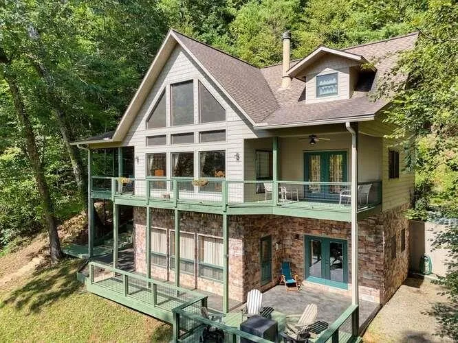 "BEST KEPT SECRET IN THE CAROLINA'S" An Angler's Paradise. Quality built 4BDRMS/3-1/2 BA. - 3-level fully finished Chalet Style Cabin with covered porches,open decks,lower level terraces and extended deck overlooking the most pristine riverfront in Western NC. mtns & lake region. Private end of road setting with over 1000 feet of frontage to center-line of the Hiwassee River with 10.37 acres of wooded and open land adjoining located in Hayesville,NC. Clay Cty. just a short distance to the Fires Creek Wilderness area & NC Black Bear Sanctuary. Located between the towns of Hayesville & Murphy,NC. in the mountains of Western NC. & lake country. Close to John C. Campbell Folk Art School and the Valley River Indian Casino as well as Tri-County Community College and Western NC. Regional hospital and airport. Come listen to the river sing sweet songs to rock your soul. Plenty of room to spread out for a large family or corporate retreat or investment as rental and build additional rentals on the vacant land. Total of 6 lots adjoining home. Multiple building sites. Tall timber & large rock outcroppings. A fabulous family legacy property to pass down for future generations of memories & sound investment. Unlimited potential & all the water recreation right in your front yard. Abundance of wildlife, turkey, deer, bear, bobcats, hawks, eagles are just a few. Exceptionally maintained by current owner/family. There isn't anything else like this out there. Truly unique & magical.