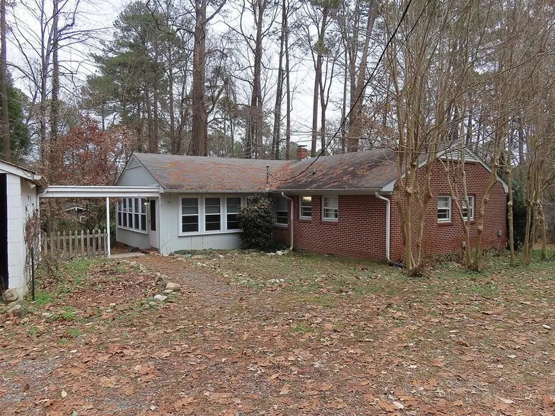 This one level home is minutes to town and campus in Dogwood acres. This neighborhood is convenient to Southern Community Park and the shops and restaurants of Southern Village. This home features hardwood flooring throughout, with tile in the bathrooms. Two walls of continuous windows fill the living room with natural light. The living room is detailed with wood paneled walls. There is a decorative (not available for use) fireplace in the living room. A small foyer with a walk in closet leads from the living room to the dining space. There is an additional side entrance door to the living room. The living room is open to the kitchen through a partial wall, and the dining room is open to the kitchen over a raised serving or breakfast bar. The kitchen features granite counters, glass front cabinets, a large center island for ample counter space, and stainless appliances. The laundry closet is off the kitchen with a washer and dryer provided. The master bedroom features a ceiling fan, two closets, and a private bathroom. The master bath includes a pedestal sink, tile flooring, and a tile shower. There is an exit from the master to the yard in front of the home. private bathroom with tile shower, and tile floor additional entry or exit 2 closets. There are two additional bedrooms. One bedroom has a walk-in closet and a with private half bath. The second full bathroom is convenient to both of these bedrooms. This bathroom has a tub-shower. The detached 2 car garage style carport (three walled, open bay) is at the end of the shared driveway. There is a covered walkway from this building to the main entry. A covered patio is on the back side of the carport. An additional street side door enters the master bedroom. The street side of the home offers tiered yard. Pet with fee and prior approval. $15/mo filter fee.