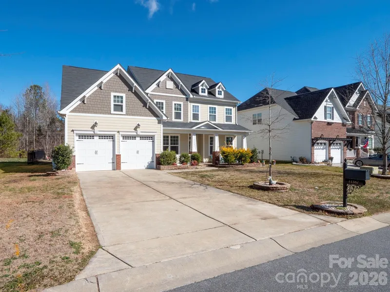Located on the Charlotte-Harrisburg line, this home offers an exceptionally desirable location in an area experiencing rapid growth and is zoned for the highly sought-after Hickory Ridge School District. The thoughtfully designed open floor plan maximizes space and functionality, featuring a private office with French doors, a formal dining room, and a bright, open family room that flows seamlessly into the kitchen. The upgraded kitchen is a standout, boasting a large center island, gas range, built-in stainless-steel appliances, and abundant cabinet and storage space. Just off the kitchen, enjoy a spacious enclosed porch/sunroom-ideal for relaxing or entertaining-overlooking the fully fenced backyard. A guest bedroom and full bathroom are conveniently located on the main level. Upstairs, the owner's suite offers a luxurious en-suite bathroom with a soaking tub, walk-in shower, and generous walk-in closets. Additional features include a large bonus room perfect for entertaining or a playroom, an upstairs laundry room, three additional guest bedrooms, and a full guest bathroom.