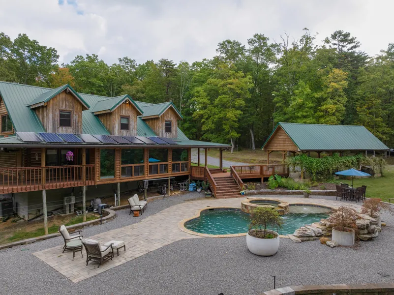 Unique opportunity to own this private oasis only 20 minutes from downtown Chattanooga. Situated on 5.88 +/- acres on Suck Creek Mountain, this property features a custom built 3 bedroom, 2.5 bath modern cabin with a 3-car carport, a 400 +/- sf studio/guest house, and a detached workshop. The property boasts 2 koi ponds and a beautiful gunite, saltwater pool with spa, sun platform and waterfalls, further enhancing this serenity of this wooded mountain locale. The main house also has a wonderful wrap-around porch, essentially extending your living spaces and taking full advantage of the setting. Once inside, you will immediately appreciate the beautiful hardwoods and tile, vaulted and beamed ceilings, open floor plan, decorative lighting, primary on the main, wonderful natural lighting and perhaps most notably, the custom, hand-made staircase that is a work of art in itself. Your tour of ...