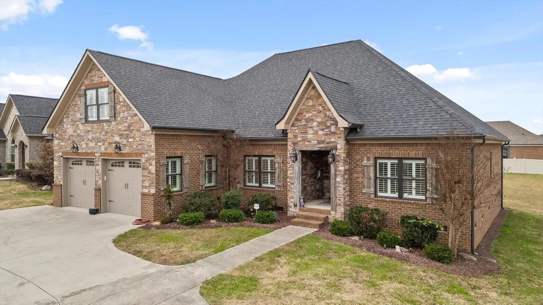 Welcome to 1821 Gray Rd, ideally positioned in the heart of highly desirable East Brainerd - one of Chattanooga's most convenient and fastest-growing areas. Located just across the street from a newly announced 14.6-acre community park, this home offers rare access to future green space, walking trails, and recreational amenities right outside your door. With close proximity to Hamilton Place Mall, premier shopping and dining, medical facilities, and multiple interstate access points, this address delivers exceptional everyday convenience and long-term value. This beautifully crafted brick and stacked stone home offers quality construction, refined finishes, and a highly desirable layout with the primary suite on the main level. Impeccably maintained and built by Rostis, builder of the sought-after homes on nearby Rostis Lane, the property also features a large backyard with no HOA dues - a rare find in this location. The thoughtfully designed 3-bedroom, 2.5-bath residence includes hardwood floors, crown molding, and plantation shutters throughout. The spacious living area centers around a striking stone fireplace, and the kitchen features custom cabinetry, granite countertops, stainless steel appliances, an electric cooktop, and a bright breakfast nook. The main-level primary suite offers a tray ceiling, sitting area, and luxurious en suite bath with separate granite vanities, soaking tub, walk-in tile shower, and custom walk-in closet. Two additional main-level bedrooms share a full bath. Upstairs, a large bonus room provides flexibility as a media room, fourth bedroom, or additional living space. Additional highlights include a laundry room with cabinetry and granite counters, exercise room, two-car garage, covered back porch, flat backyard with room for a pool, and exterior lighting that enhances the brick and stone facade. Schedule your private showing today before this home is sold.