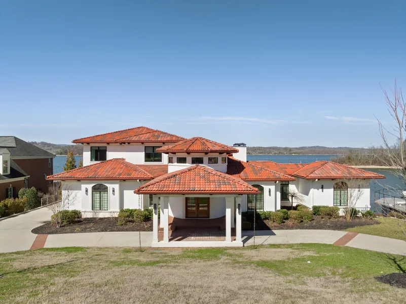 Luxury Lakefront Living! 6 bedrooms 6.5 bath custom home on Chickamauga Lake in the gated Windward Cove neighborhood approximately 20 minutes from downtown Chattanooga. Premium finishes include marble tile floors, stone countertops, specialty ceilings, architecturally distinctive staircases and lighting, plantation shutters, casement windows, fantastic outdoor living spaces with sweeping views of the water, a double garage, a porte-cochere entry and a utility garage in the daylight basement. The main level has an open floor plan with a large circular foyer and dramatic lighting that sets the tone for the rest of this impressive, modern home. There is an office or sitting area to the right, a spacious great room with a tile accent wall with an inset fireplace, a formal dining room, a well-appointed kitchen with a large island, soft-close and pull-out drawers, under-cabinet and pendant lig...