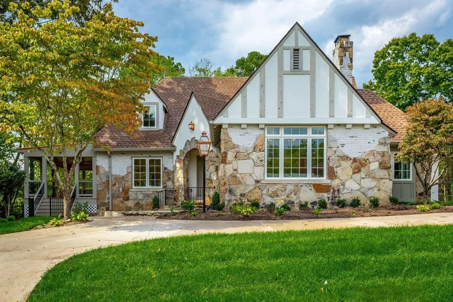 Luxurious Tudor style home with original stone, brick & stucco exterior in Riverview. Completely restored down to the studs. New aggregate circular drive plus a 2 car garage in the rear of the home. New Trex side deck with a copper lantern for outdoor living. Walk in to an open kitchen and dining room. The spacious dining room has French doors onto the deck. This luxurious kitchen has been expanded with new high end cabinets, a new tile backsplash, & top of the line appliances. Miele 8 burner gas steam range with double oven, Miele dishwasher, microwave drawer in the island, & a Dacor paneled side by side refrigerator and freezer. Main level guest bedroom and full bathroom with a walk-in glass shower, beautiful floor tile, tiled wainscoting, and new vanity. Next to the front door is a sunken great room with a Tudor style stained wood high beamed ceiling. Fantastic light and airy room for...