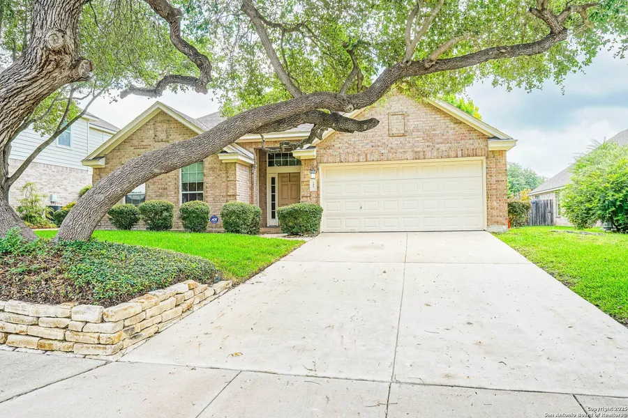 Charming single-story home located in the classic and cozy Braewood subdivision of Cibolo. Built by Pulte, this flexible floor plan offers three bedrooms plus a study-or a fourth bedroom-featuring elegant French doors. Enjoy a spacious open living area with high ceilings and abundant natural light. Recent upgrades include a new heavy composition roof (Nov 2025) and new stainless steel appliances (Nov 2025). Exterior pics do not reflect new roof. Additional updates feature an improved HVAC system and laminate flooring in the living and dining areas, with ceramic tile in the kitchen and breakfast room. The split primary suite offers a relaxing retreat with a garden tub, separate shower, and generous walk-in closet. Beautiful oak trees canopy the front yard, and the landscaping throughout the property is thoughtfully maintained. Schedule your private viewing today!