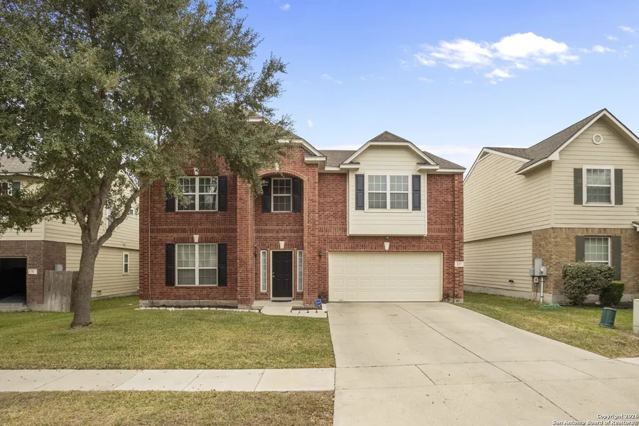 Welcome to this beautifully updated 4-bedroom, 3-bath home located in the desirable community of Cibolo, featuring many upgrades throughout. The home showcases updated tile and wood flooring, along with renovated bathrooms enhanced by modern finishes and new hardware. The spacious kitchen stands out with marble countertops, stainless steel appliances, and generous cabinet and counter space, making it ideal for everyday living and entertaining. The open-concept layout flows effortlessly into the main living areas, creating a bright and inviting atmosphere. Upstairs, a large loft offers versatile space for a game room, media area, or second living area. The expansive primary suite provides a private retreat with a double vanity, separate shower, and soaking tub. Secondary bedrooms are well-sized and thoughtfully laid out. Step outside to enjoy the large backyard, perfect for relaxing or hosting gatherings. Community amenities include a neighborhood pool, and the home is conveniently located near Randolph Air Force Base, as well as shopping, dining, and entertainment options.