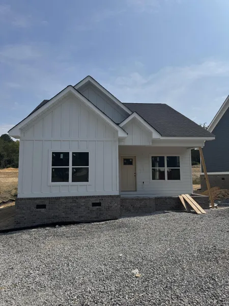 This thoughtfully designed 3 Bedroom, 2 Bath home offers 1250 sq. ft. of elegant, open-concept living with 9-foot ceilings throughout and a vaulted great room that brings in natural light and a sense of spaciousness. The exterior features Hardie siding with stone accents along the foundation for a clean, modern farmhouse look. A welcoming front porch and warm design details make this home feel both inviting and stylish. Located in Oak Hills, within 5 minutes from Lee University and Downtown Cleveland, you'll enjoy a quiet neighborhood setting with quick access to schools, shops, and restaurants. Built by Premium Contractors LLC with quality and care in every detail. Don't miss the chance to make this home yours! Please Note: Home is under construction. Images are plan renderings. Association fees TBD.