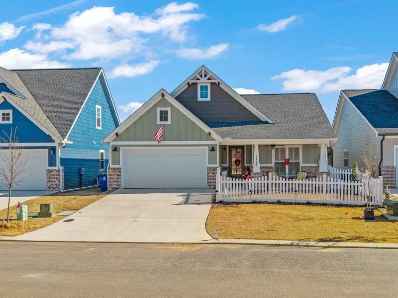 Built in 2025 and better than new! This thoughtfully designed home is move-in ready with upgrades already completed for you. The current owner has added a fully fenced yard, custom kitchen backsplash, blinds throughout, and charming bead board accents, details that elevate both function and style. The open-concept layout centers around a bright, welcoming kitchen with an oversized island, perfect for entertaining or everyday living. White cabinetry, modern finishes, and updated lighting flow seamlessly into the living area, creating a warm and inviting space. The living room features beautiful bead board detail and abundant natural light, while the home's neutral palette makes it easy to personalize. Enjoy outdoor living with a fenced front yard ideal for pets, play, or relaxing evenings. Located in a growing community with sidewalks and planned amenities including a pool, a pickleball c...