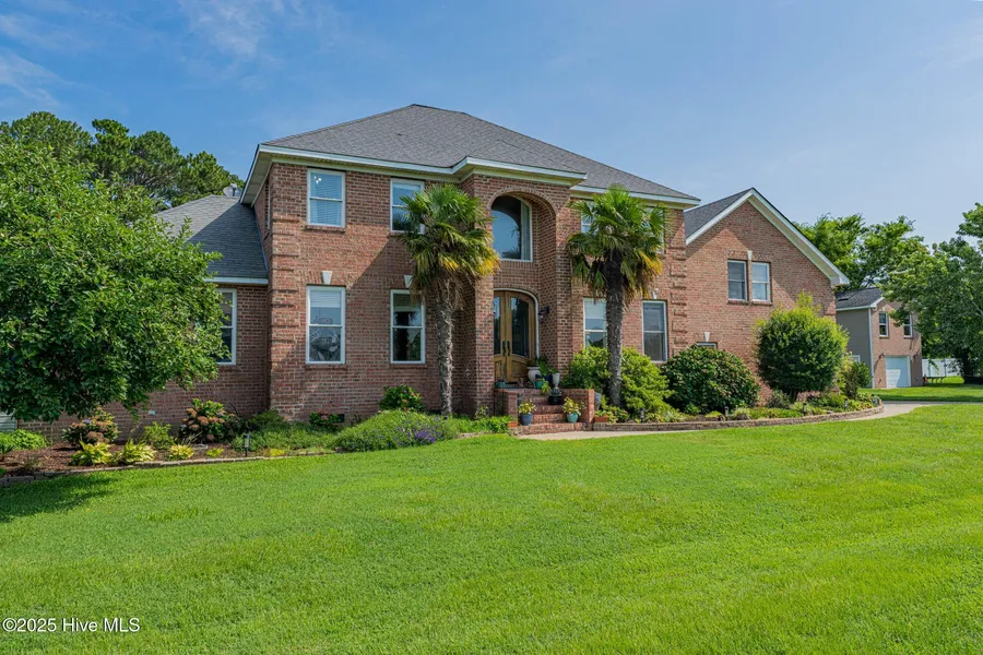 Welcome to this lovely brick home nestled on a spacious 3/4-acre corner lot with sound water access and stunning marsh views. This beautifully maintained property features an in-ground pool surrounded by lush landscaping and a screened porch with a hot tub-perfect for outdoor relaxation and entertaining. Inside, oak wood flooring runs throughout the main level, creating a warm and timeless feel. The kitchen opens to a cozy sitting room with a gas fireplace, ideal for gatherings. Enjoy quiet moments in the Florida room or work from home in the dedicated office space. The expansive finished room over the garage includes generous closet space, offering endless possibilities for a media room, gym, or additional bedroom. The primary suite features a tray ceiling, spa-like ensuite with a jetted tub, walk-in closet, and breathtaking views. Additional highlights include a wrap-around deck, a two-car attached garage, and a detached garage with an upstairs room already framed for a bathroom-ready to be finished into a guest suite, studio, or income-producing rental. The home's heat pump is just two years old, providing energy-efficient comfort year-round. Don't miss this versatile property that offers both luxury and functionality in a serene setting.