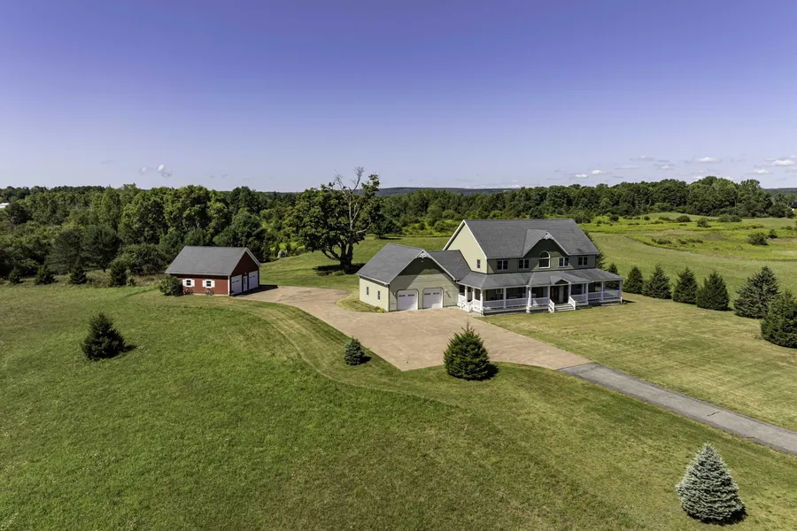 Discover this custom-built 3-bedroom, 2.5-bath colonial set on an impressive 114 acres of rolling fields, wooded acreage, and open meadows perfect for hay or recreation. Designed with both comfort and function in mind, the home features a spacious main-floor primary suite, a soaring great room with open loft, and a bright three-season sunroom with knotty pine walls that bring the outdoors in. Energy efficiency blends seamlessly with timeless design, offering geothermal heating and affordable Boonville power. Large windows and high ceilings flood the home with natural light. The full 1,635 sq. ft. unfinished basement offers endless expansion opportunities-whether as a game room, home theater, home office, or additional living space. Outdoors, enjoy a landscape of trails connecting to hunting ranges and nearby snowmobile routes, a picturesque small pond, and abundant wildlife. The property features both an attached two-car garage and an additional detached two-car garage, each with storage rooms above, ideal for seasonal gear, equipment, or workshop use. Relax on the covered front porch while taking in sweeping countryside views, or take advantage of thoughtful extras like the indoor dog-washing station. Offering incredible privacy, quiet surroundings, and beautiful vistas in every direction, this property is located just minutes from Boonville yet feels worlds away. Whether you envision a working farm, private homestead, or year-round retreat, this one-of-a-kind property delivers space, seclusion, and the enduring appeal of classic country living.