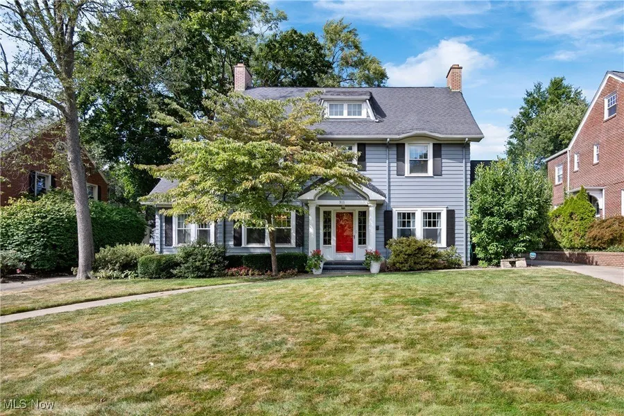 The brick paved streets and classic lamp posts of Historic Ridgewood set the perfect tone for this lovely home, loaded with warmth and charm! Enter through the front door with leaded glass sidelights into the inviting entry foyer. You'll immediately feel the comforts of home from original gleaming woodwork to the beautiful open staircase. Through french doors, you'll find the living room, showcasing a wood burning fireplace and wood floors. A decorative door leads to the delightful screened porch, the perfect place to relax and unwind. The dining room sets the stage for the perfect place to entertain, complete with wainscoting and a chandelier. The bright and airy sunroom provides yet another wood burning fireplace. The updated eat in kitchen is a cooks delight, with updated cabinets, quartz countertops, a breakfast bar, beadboard accent wall, awesome appliances, plus a wine rack and bonus desk area for meal planning. The eat in area showcases a beautiful view of the rear yard where you'll find the low maintenance composite deck with a tranquil water feature, leading to the park like yard and 2 car detached garage with added storage above. Just off the kitchen is a convenient half bath and closet. Upstairs to the second floor, where you'll find 4 bedrooms all with hardwood flooring plus a large full bath. Open the door and head up to the third floor where you'll be delighted to discover the owner's oasis, complete with the primary bedroom, large sitting area and a full bath. Replacement windows, Gas boiler 2023, 22 amp electric service, hot water tank in 2017, Simply Safe Security and cameras, newer concrete drive, new garage doors and openers. The perfect blend of historic beauty and modern conveniences.
