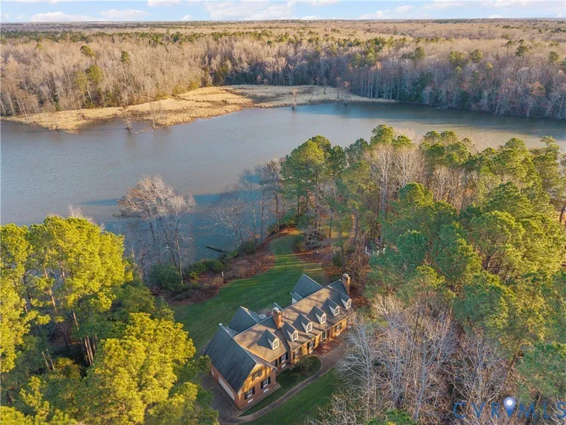 Rare waterfront custom home on Morris Creek with easy access to the Chickahominy and James Rivers, just minutes from Colonial Williamsburg, Jamestown, and the Virginia Capital Trail, and only 45 minutes from downtown Richmond. Privately situated on beautifully landscaped grounds, the home enjoys protected water views across the creek, offering long-term privacy and a peaceful natural setting. Features include a first-floor primary suite, hardwood floors, multiple living spaces, and one wood-burning fireplace currently in use. Sunroom and raised patio overlook the water. Primary bath remodeled in 2025. Four garage bays with two attached and two detached, including heated workshop and a finished room over the detached garage, plus an unfinished room over the main house garage offering an easy opportunity to add more than 625 square feet of vaulted living space. Major upgrades include multiple HVAC systems, sealed crawl space, Generac automatic propane generator 2024, new hot water heater with recirculation pump 2026, Wi-Fi enabled garage door opener, and Starlink internet service conveying. Exceptional pier with 5,600 lb boat lift, PWC floater, kayak launch, power and water. No Homeowners Association.