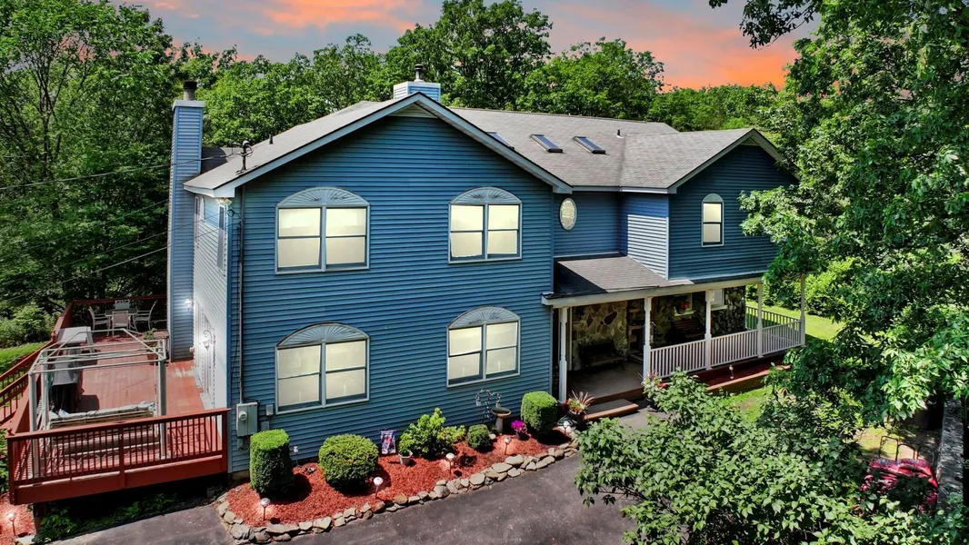 Welcome to 65 Oxford Springs Road, Chester, NY - a custom-built Country Contemporary set on a private 2.3-acre hilltop. This one-of-a-kind property offers the perfect balance of privacy, space, and convenience, just minutes from the NYS Thruway, state parks, and only 45 minutes to NYC. Inside, the bright open floor plan is filled with natural light, featuring rich hardwood floors, custom trim work, and soaring 26-foot ceilings. The living room, anchored by a striking stone fireplace, flows seamlessly into a modern granite kitchen with an oversized island and stainless steel appliances - ideal for gatherings and everyday living. With five bedrooms and four bathrooms, the layout includes a primary suite with its own fireplace and a private balcony overlooking the peaceful landscape. French doors open from the dining area to a backyard deck, perfect for quiet mornings or entertaining. Addin...