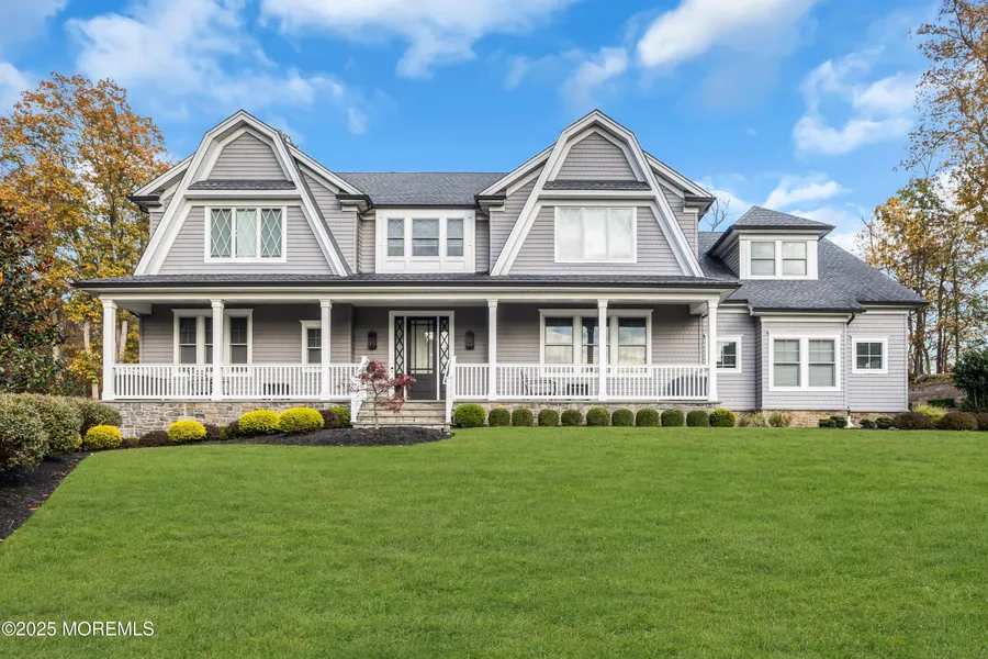 Absolutely incredible Roger Mumford built shore style colonial from 2018 situated on an absolutely spectacular set back private 2.48 acre lot. This beauty features over 6400 sq ft of finished living space spanning across three floors including the basement. Elegant and sophisticated style throughout this open and functional floor plan with absolutely no wasted space having 5 full bedrooms all on second floor along with 4 full and 3 half baths. First floor features an office along with an open family room to massive chef's kitchen with top of the line cabinetry and appliances. All custom closet buildouts and tons of natural light beaming through the home along with spacious bedrooms and beautifully detailed trim and impeccable bathroom design in each of the private baths. Basement features a full gym and a whole other entertainment and separate storage areas. Owners spared no expense in outfitting the backyard with a Hampton Style pool featuring fire bowls and spillovers along with a raised spa and outdoor kitchen and firepit areas made for true resort style living. Truly nothing to do but move in and enjoy this incredible and newer built custom beauty by one of NJ's premiere home builders. Located close to all major transit and shopping along with one of the top school districts in the state this is an absolute no brainer!