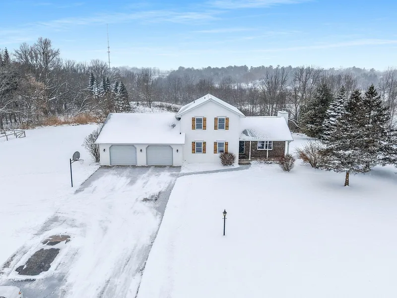 Stunning, hard-to-find, picturesque 7.44-acre lot in the highly desired Denmark School District, this spacious 2-story home offers the perfect blend of privacy, convenience, and updates. Step through the front door into over 2,890 sq ft of living space featuring 5 bedrooms, 3.5 baths, a gas fireplace, an exceptional floor plan, and abundant natural light. Enjoy the comfort of a 4-seasons room, first-floor laundry, first-floor primary suite, and a partially finished lower level with a full bath and additional bedroom. The land is rich with wildlife, walking trails, and a small creek running through the property. The attached garage is generously sized with basement access, and for even more storage or workspace, a 27x35 detached garage/outbuilding is included.