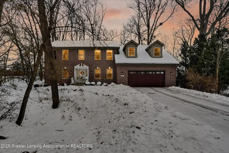 Welcome to this beautiful brick, traditional two-story colonial perfectly situated in the heart of Glencairn. Set on a tree-lined lot and just a short walk to Glencairn Elementary, Michigan State University, and downtown East Lansing, this home blends timeless charm with meaningful updates in one of the area's most sought-after neighborhoods. Step inside to find gleaming hardwood floors that carry up the stairs and throughout the home. The spacious primary suite features two walk-in closets, an additional exercise/bonus room with a cedar closet, and a stunning newly remodeled ensuite bath complete with heated floors. Three additional upstairs bedrooms offer generous closet space and share a beautifully updated full bath-also featuring heated flooring. The main level includes a dedicated first-floor office, an updated half bath, and a bright, open kitchen equipped with a JennAir downdraft gas cooktop, large center island, Bosch dishwasher, soft-close cabinetry, and a built-in bar with mini fridge. Natural light fills the adjoining great room, highlighted by cathedral ceilings, skylights, and a slider leading to the outdoor living space. Enjoy the beautifully landscaped yard with a newer expansive deck, complete with railings, solar lighting, and a charming stone retaining wall-ideal for entertaining. Additional features include a first-floor laundry/mudroom directly off the garage, a large basement with egress ready for finishing or excellent storage, and numerous mechanical updates such as a 2024 furnace, newer water heater, water softener, and insulated garage door. This exceptional home offers classic character, modern comfort, and an unbeatable location-truly a rare find in Glencairn.